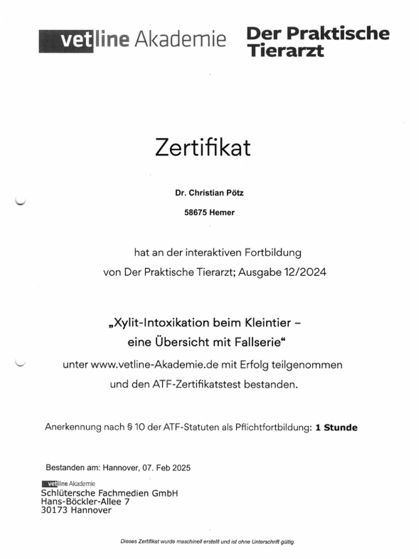 „Xylit Intoxikation beim Kleintier – eine Übersicht mit Fallserie“