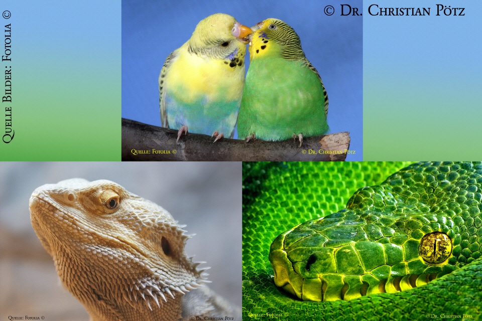 Wir bieten für Vögel und Reptilien wie z.B. Wellensittiche, Agamen, Echsen, Schildkröten und Schlangen eine Basisversorgung an.